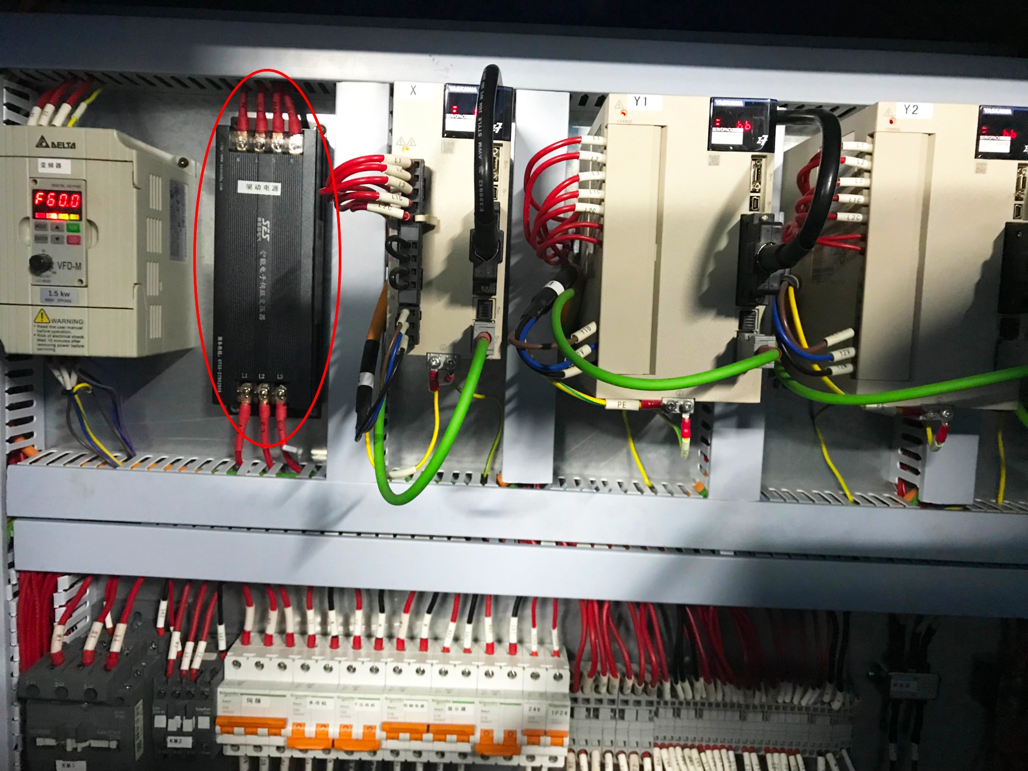 本產(chǎn)品采用進(jìn)口最前沿的微波器件.三相全橋開(kāi)關(guān)諧振技術(shù)。SPWM調(diào)制技術(shù)·完全消除EMI干擾.廣泛應(yīng)用干三菱、安川、松下、三洋、臺(tái)達(dá)、東元、富士、日立、歐姆龍、ABB、法拉克、施耐德、路斯特、科比、倫茨、廣數(shù)......等所有進(jìn)口,國(guó)產(chǎn)同服系統(tǒng);該變壓器的容量可以從0.5KVA到80KVA,滿足了所有伺服電機(jī)電壓的匹配。